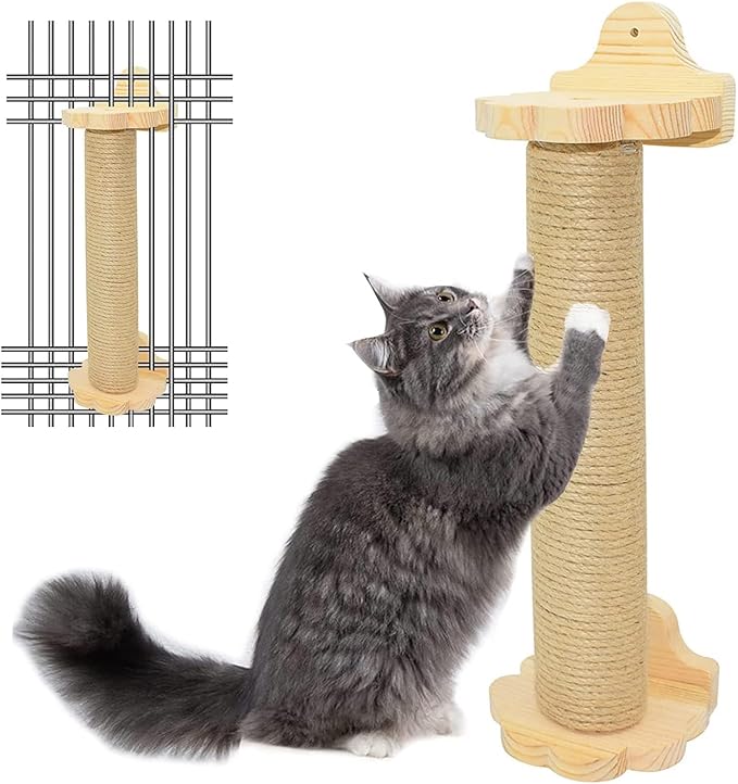 天然ジュート素材使用のシンプルなポール型爪とぎ。安定感のある土台設計で倒れにくく、コスパも優秀です。